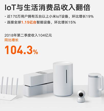 在手机业务占据七成营收下,外界对小米的互联网属性质疑颇多。而根据本次财报的最新数据,2018年二季度,小米手机业务占总收入的百分比由71.5%下降至67.4%;IoT与生活消费产品和互联网服务收入合计,所占百分比由27.9提升至31.7%。结合前文小米的互联网收入业务的收入结构的优化,更进一步证实其互联网公司的企业定位。