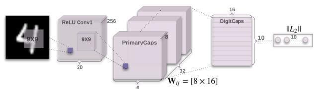 “胶囊”代表图像中特定实体的各种特征,比如位置、大小、方向、速度、色调、纹理等等,作为一个单独的逻辑单元存在。然后,使用一个协议路由算法,当胶囊将自己学习并预测到的数据传递给更高层次的胶囊时,如果预测一致,更高级别的胶囊变得活跃,这个过程就被称作动态路由。