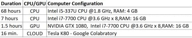 1.模型训练的周期局限。由于需要在每个胶囊单元中完成计算(协议路由算法),导致其训练模型的时间更慢。在不同硬件和云服务器上的50迭代训练时间说明,与CNN相比,胶囊网络模型需要更大的耐心。