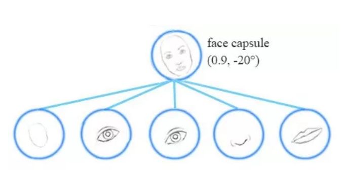 随着路由机制的不断迭代,就能够将各种胶囊训练成学习不同思维的单元。例如,让神经网络识别面部,就将面孔的不同部分分别“路由”到能够理解眼睛、鼻子、嘴、耳朵的胶囊里去。