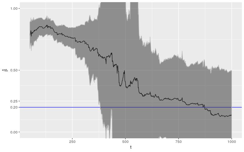 回到 GARCH 模型参数估计的话题,我猜测β的不稳定性可能来自以下原因: