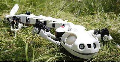 这个机器人看起来有点吓人,但它能像两栖动物一样爬行,穿过草地。它对研究蝾螈的中枢神经网络提供重要帮助。