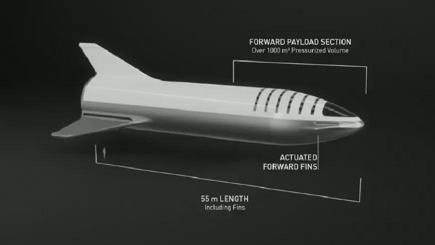 BFS飞船加上尾翼的长度达55米,装有能够活动的前行飞翼。马斯克在推特上表示,SpaceX目前已完成60次以上的着落,他们拥有世界上唯一能够重复利用的火箭和飞船。