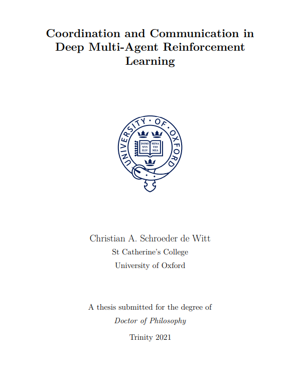 后台回复“R223” 就可以获取《【牛津大学博士论文】深度多智能体强化学习中的协调与沟通,223页pdf》专知下载链接