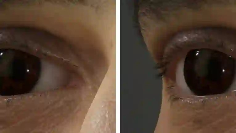 就那下面两个对比图来说,左边没有泪线,右边添加了泪线,并且进行了阴影处理,哪个更真实也就不言而喻。
