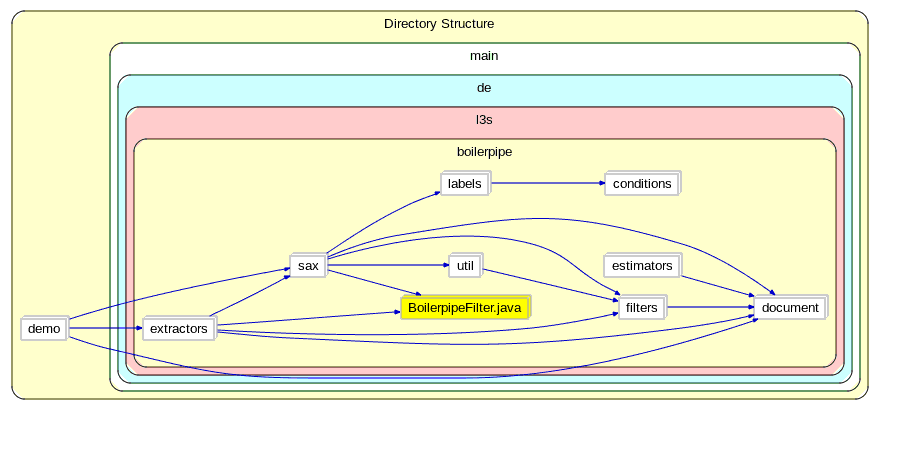 document,文档包,定义了 boilerpipe 所处理文档数据类型,主要包括 TextDocument 和 TextBlock 。一个 TextDocument 即一个网页,由多个 TextBlock 构成。