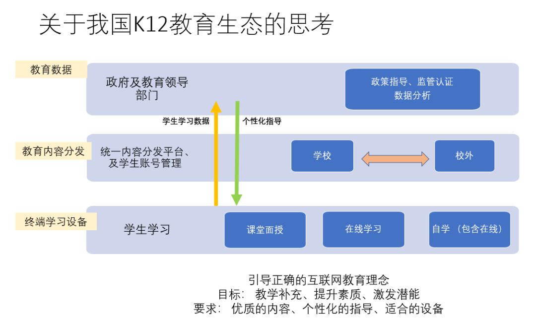 不同企业帮助服务方提升效率,帮助其他合作方提供硬件或者软件来提供更有效的问题解决途径。教育生态需有家长管控,可以检查孩子的数据,企业就可以针对这一方面,抓住需求进行盈利。