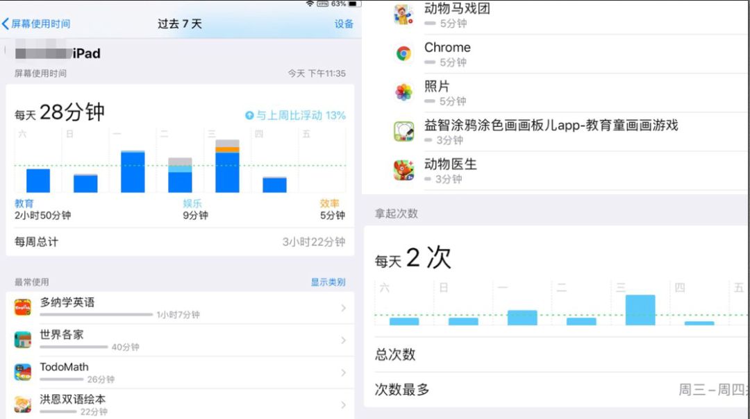 对于成瘾问题,需要控制好孩子使用iPad的时间段,控制好时间,与孩子达成“约定”,引导是一个反沉迷的好方式。