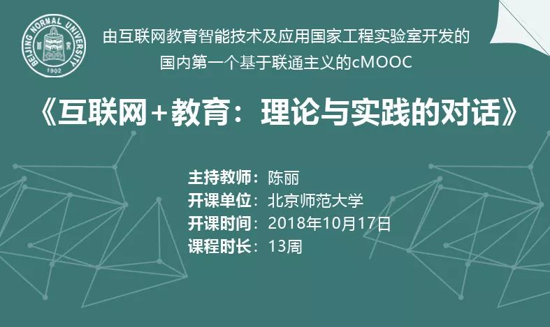 【加入课程】陈丽教授开课啦!cMOOC《互联网+教育:理论与实践的对话》,加入高端研究社区一起学习吧!