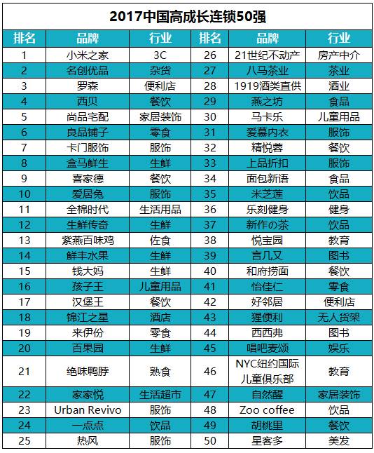 2017年是中国实体连锁企业发展转型的重要一年,经历电商冲击和O2O洗礼之后,在消费升级与新零售双重驱动下,实体企业与互联网结合的速度超乎了互联网界的想象。这一年不仅诞生了一批从线上落地线下的连锁新秀,更有一批10年以上的老店革新换面,重新吸引消费者的眼球。11月13日,开店邦第十届“中国高成长连锁50强”榜单正式公布。与往届所不同的是,这一届诞生的新面孔之多,出乎意料又在情理之中。