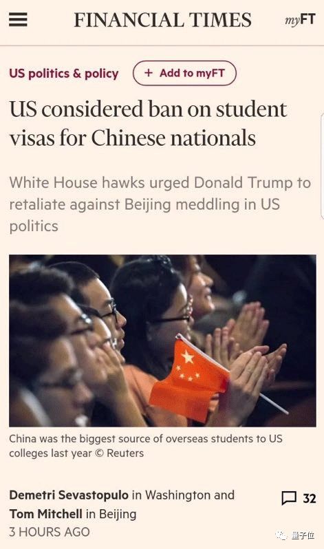 据金融时报刚刚发出的报道,美国政府正在考虑禁止中国公民获得学生签证。
