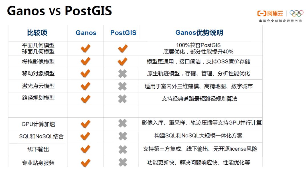 ganos专业级时空组件,兼容GIS标准,MOD模型比PostGIS 50-100倍性能提升;