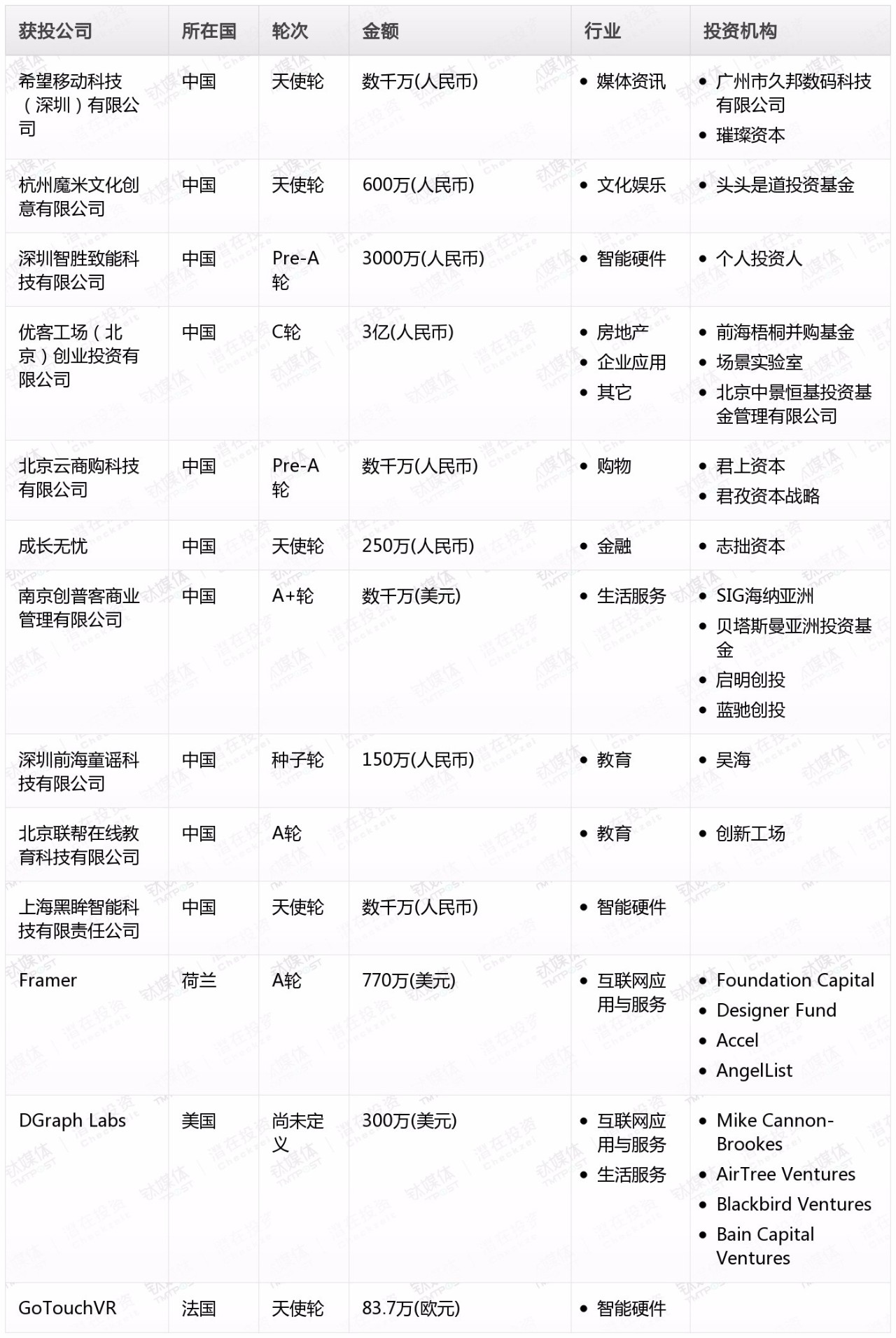 表:2017年12月23日 海内外科技领域投融资事件(钛媒体Pro制表)