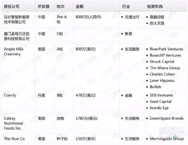 表:2017年12月22日 海内外科技领域投融资事件(钛媒体Pro制表)