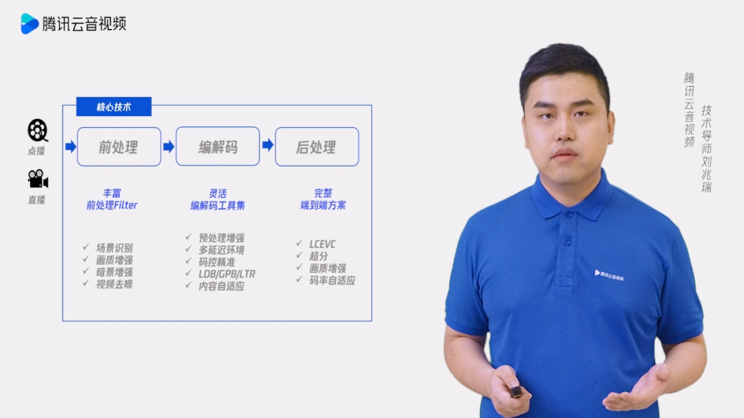 对于腾讯明眸来说,极速高清后续发展主要两个主轴,一方面是与 AI 能力的进一步深入结合,在前处理阶段利用 AI 进一步处理视频画质来辅助压缩,在编码器内部,利用 AI 的能力对 RDO 分析预测加速,在播放端,致力于 LCEVC 的支持,以及端测的超分和画质提升。另一方面是针对直播场景的深入优化,目前很多编码工具的复杂度较高,对于直播场景很难保证实时, 对于这些编码工具进一步优化与加速,更好的应用于直播场景。