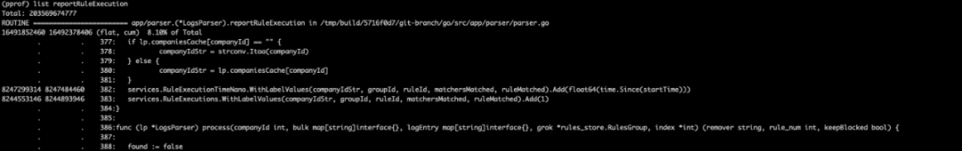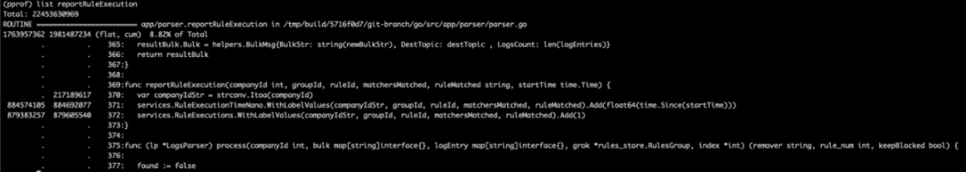 除第三行外,一切似乎都很合理。第三行是一个监控函数,在每个 Coralogix 规则解析阶段的末尾向我们的 Promethes 导出者(exporter)输出报告。为获取进一步的信息,我们运行以下命令: