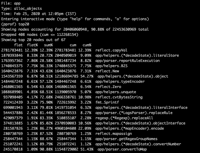 go tool pprof -allocobjects <HEAP.PROFILE.FILE>