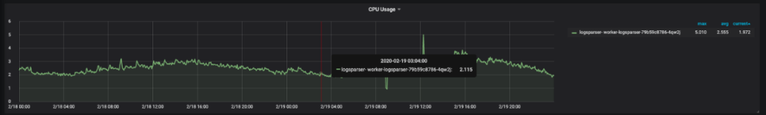 这项新服务全天候运行在我们的生产环境中。虽然结果很不错,但是它仍然需要运行在高性能的机器上。这个 Go 服务运行在一台 8 核 CPU 和 36GB 内存的 AWS m4.2xlarge 实例上,每天解析超过数百亿的日志。