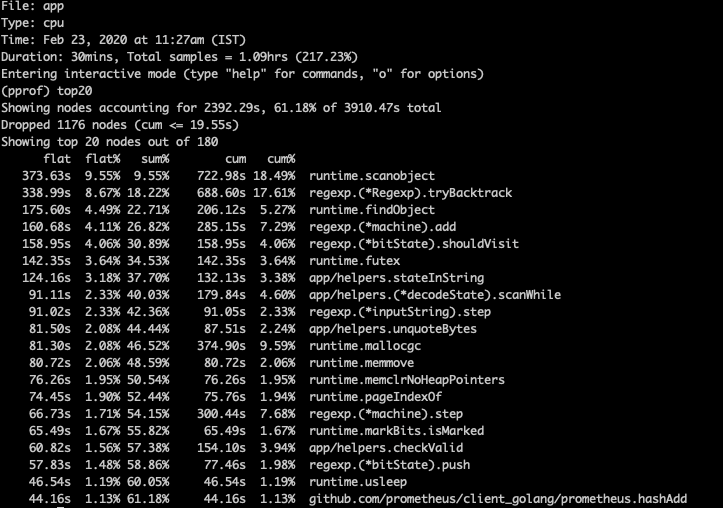 我们决定在服务上运行一些性能分析,并检查是什么导致 CPU 的高消耗,看看是否可以做些优化工作。
