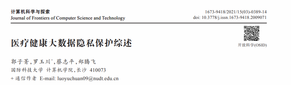 后台回复“医疗隐私” 就可以获取《医疗健康大数据隐私保护综述》专知下载链接