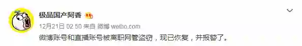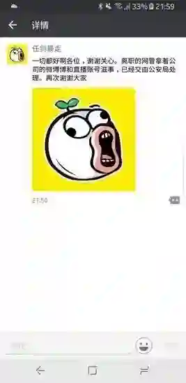 对此,任剑在朋友圈回应称,“一切都好啊各位,谢谢关心。离职的网管拿着公司的微博和直播账号滋事,已经交由公安局处理。”