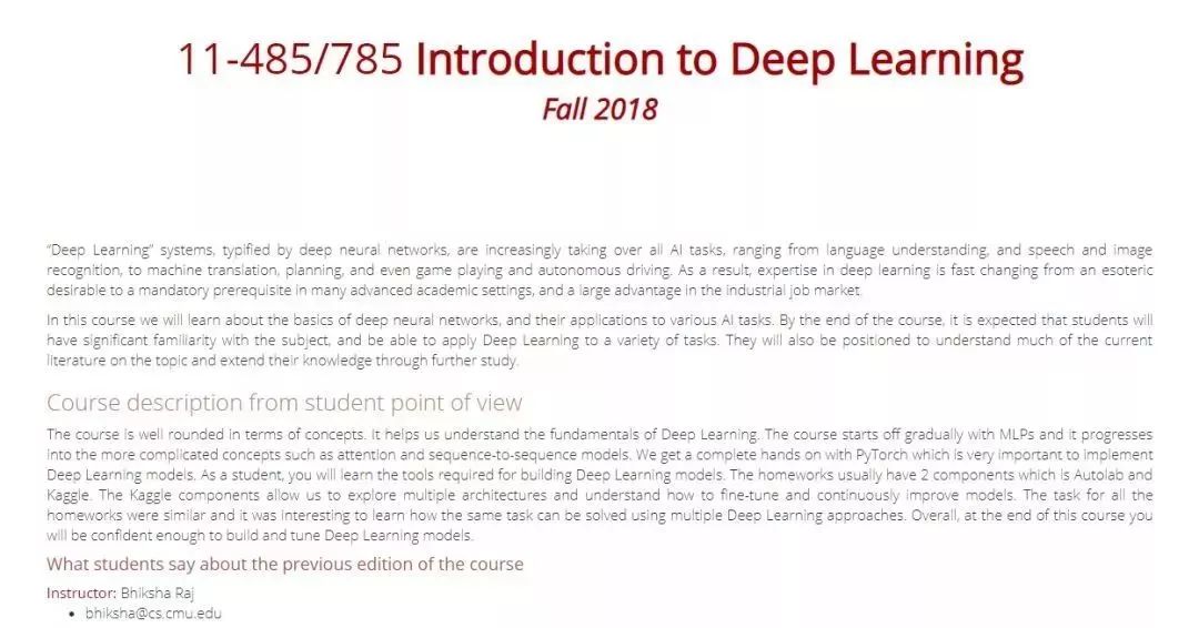 课程官方链接:http://deeplearning.cs.cmu.edu/