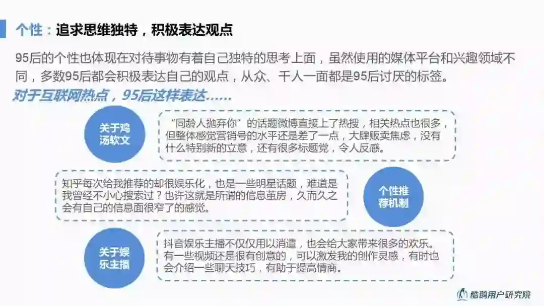 95后关注自我意识培养和自我成长,通过网络获取知识和技能同样是他们生活的主要组成部分。注重知识和观点性内容的产出,是走进年轻群体一种方式。