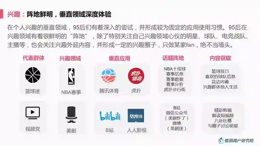 随着95后的成长,兴趣圈子的文化逐渐蔓延为年轻群体主流文化,互联网行业如何理解?为此,酷鹅用户研究院(微信ID:kueclub)特展开系列研究,本期将深入解析95后互联网生活方式。