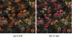 2.1 将文章使用的网络结构U-net替换为CAN,可以看到U-net的PSNR高于CAN。尽管CAN的SSIM高于U-net,但是处理得到的图片颜色失真,如图7所示。