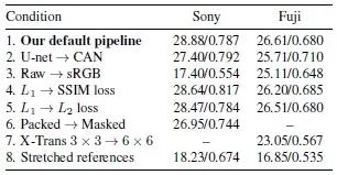 2.2 将输入由原始数据替换为sRGB输入,发现文章的处理流程对原始数据处理得到的结果优于对sRGB处理的结果。