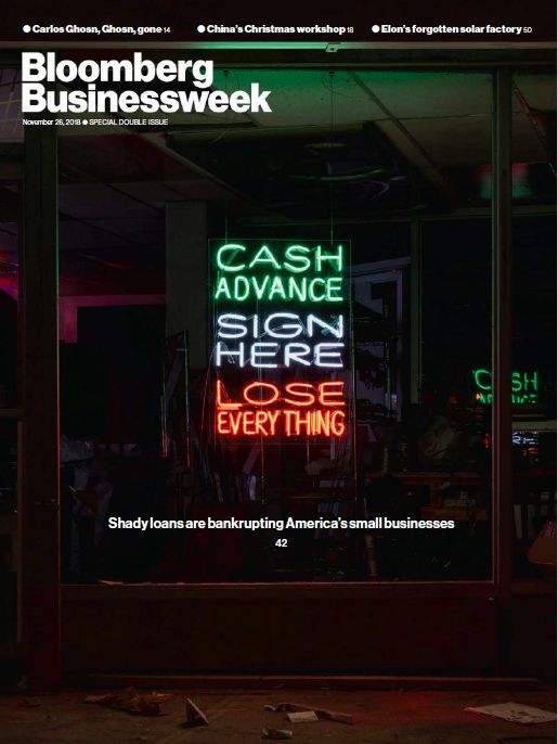 金融危机过后,银行在小企业最需要现金的时候削减了贷款,各种放贷机构趁机开始说服小企业承担代价高昂的债务。借款人在获得贷款之前需要签署一份声明,如果贷款人将他们告上法庭,他们必须放弃为自己辩护的权利。而贷款人可以在没有证据的情况下指控借款人不还款,并依法没收他们的资产。由于美国借贷法律的漏洞,纽约法院系统已成为吞噬美国小型企业的收债机器。