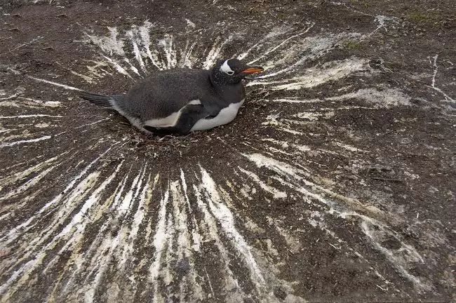 在繁育期,企鹅不会离开心爱的蛋去远处上厕所,它们只是站在自己的巢边上,撅起屁股——pppppppuuu——!时间长了,喷的次数太多,以至于以巢为中心,形成了便便结界。