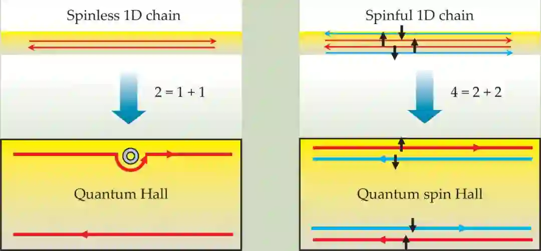 量子霍尔效应和量子自旋霍尔效应示意图。| 图片来源:Physics Today