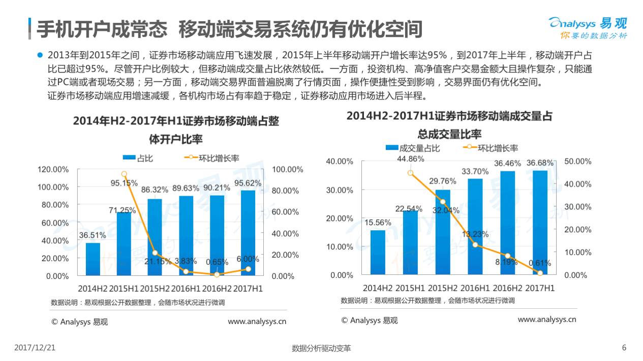 证券类APP已成为连接券商与用户的重要接口,目前,超过95%的开户都在移动端进行,移动端证券成交量占总成交量超过30%,证券类APP已成为投资者不可或缺的应用。然而,经历过高速发展之后,市场已没有由PC端向移动端转移的红利,移动应用同质化严重,头部应用正在谋求科技转型。未来证券类移动应用之间技术壁垒将提高,同业难以复制,广大投资者将从券商科技转型中获益。