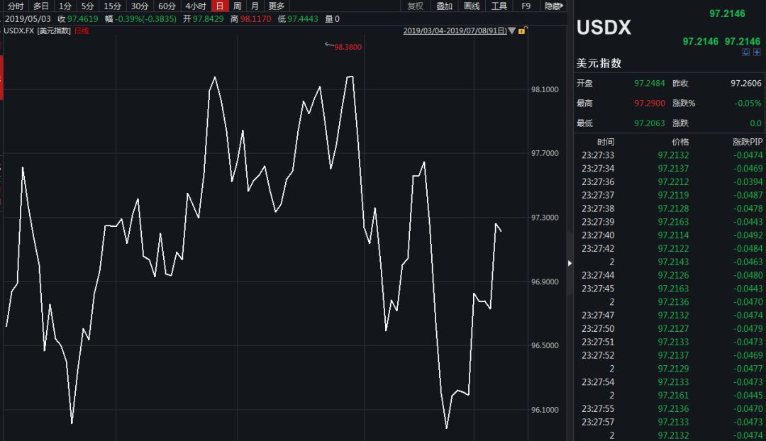 美元指数则走高。