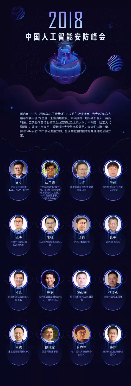 演讲嘉宾:中国工程院院士、安防巨头首席科学家、明星AI公司高管、学术大师、IEEE Fellow等。