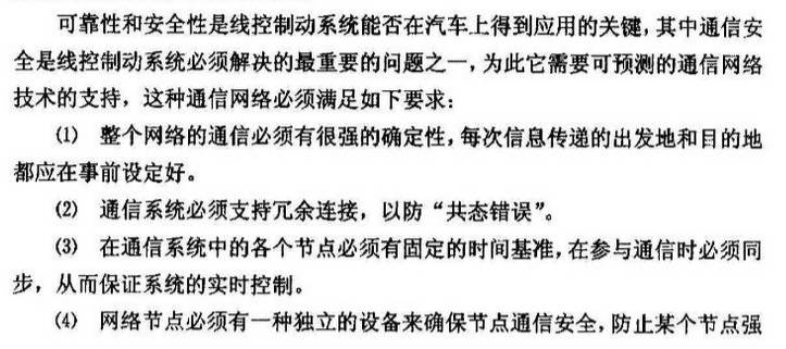 容错功能:即使节点故障,整个系统不丧失制动能力,保证车辆能以低速行驶到修理店。