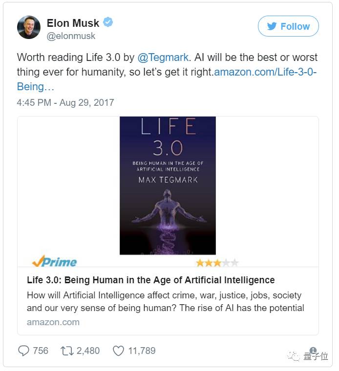 昨天,马斯克推荐了MIT宇宙学教授Max Tegmark的新书《生活3.0:人工智能时代的人类》,并在Twitter上写了段推荐语,再次提醒人工智能的威力不容小觑。
