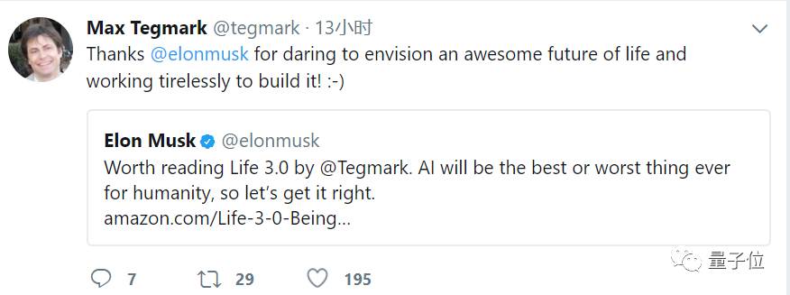 △ Tegmark在推特上感谢马斯克推荐自己的书