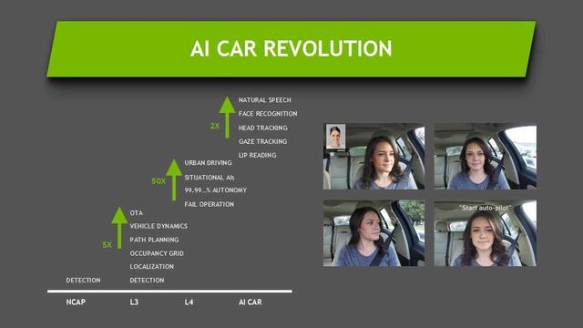 我们自己总结了一下,我们把自动驾驶起了一个比较好听的名字,叫做AI Car的演进。AI Car从三级开始,其实包括了检测、定位。我们有战略网格到车身姿态到OTA,这是三级的主要功能。三级主要的功能就会比二级在计算力的需求上,光是计算力就要高5倍,甚至5倍都不够,所以这还取决于很多算法。包括三级是否在某些特定场景做的,因为即使在特定场景做到3级自动驾驶是非常不容易,因为有变道等等都非常困难。