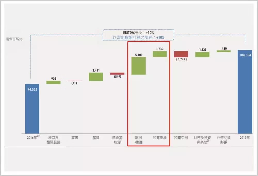 经过多番挪腾,到2017年长和系已经成为完全以欧洲为大本营的跨国集团,54%的息税摊销前利润(EBITDA)来自欧洲;而在欧洲获得的利润中,高达43%来自电讯业务。