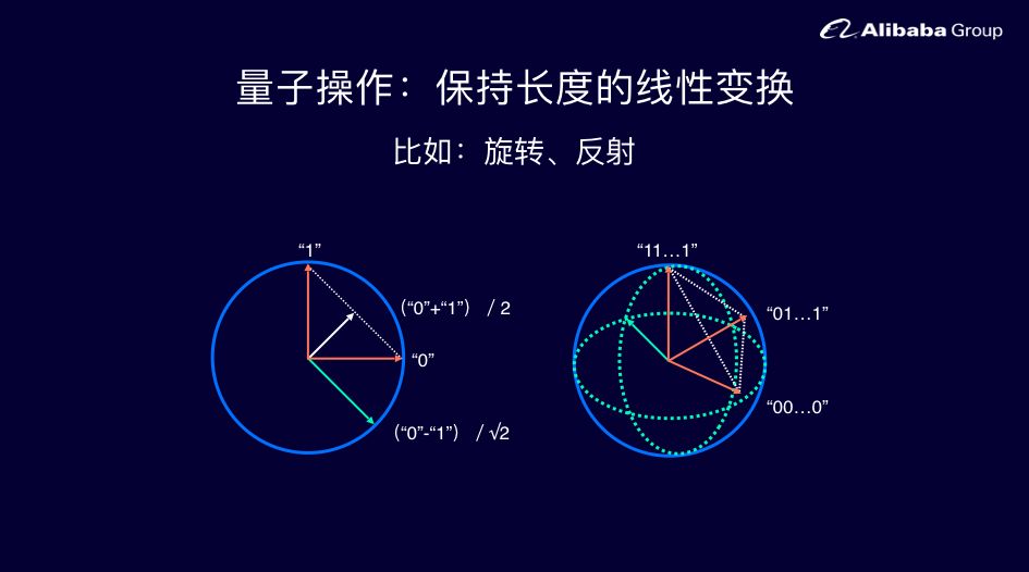 这是我们规定表示量子态的向量长度为1,因为对应的所有的概率加起来,等于原来向量的长度,应该是1。