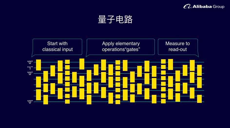 算法就是由电路表达的,电路表达了算法。到运算完最后一个基本操作以后,我们会测量这些量子比特。