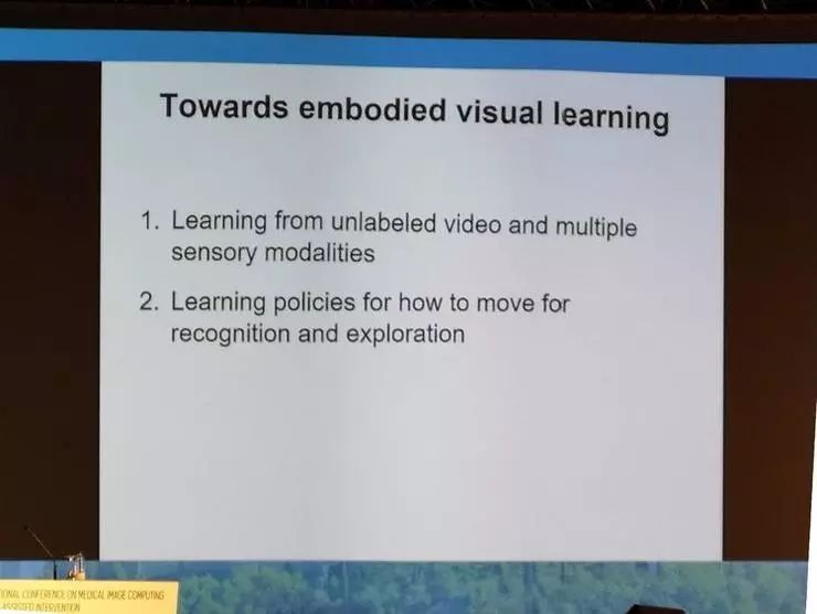 MICCAI 与计算机视觉本身就是一家。十多年前,我个人的文章只发 CVPR、lCCV、ECCV 等会议。可是形势逐步演化,MICCAI 成为我的首选,为的是与更多的同行有交流,影像分析与视觉似乎越走越远。可最近情况有所逆转,特别是算法方面,很多基于深度学习的算法很快就会在两边普及。本次会议也邀请了 Professor Kristen Grauman 作为主讲嘉宾。