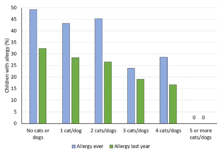 这项研究更神奇,说在小朋友出生第一年,养猫狗越多,过敏越少 | Hesselmar B,et al. / PLoS One(2018)