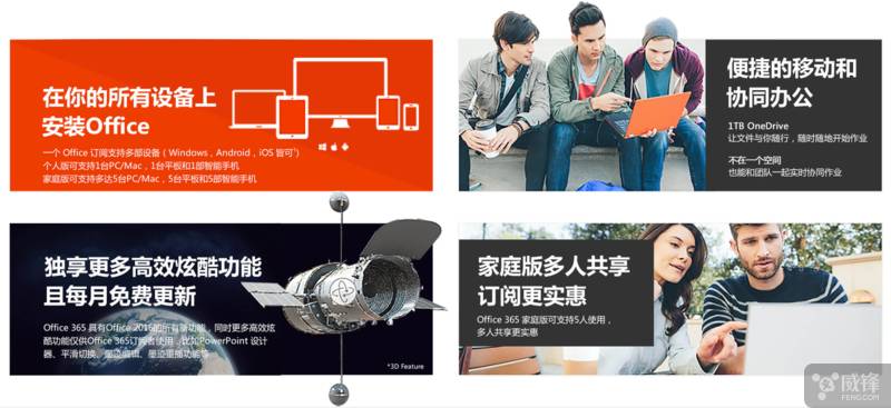 现在购买之后,用户可以在一台 PC 或 Mac 、一台平板电脑(包括iOS、Android、Windows 平板)和一台手机上同时使用 Word、Excel、PowerPoint、Outlook 和 OneNote 的完全安装板,不过 Publisher 和 Access 两款软件只适用于电脑。