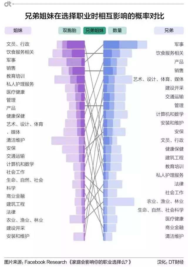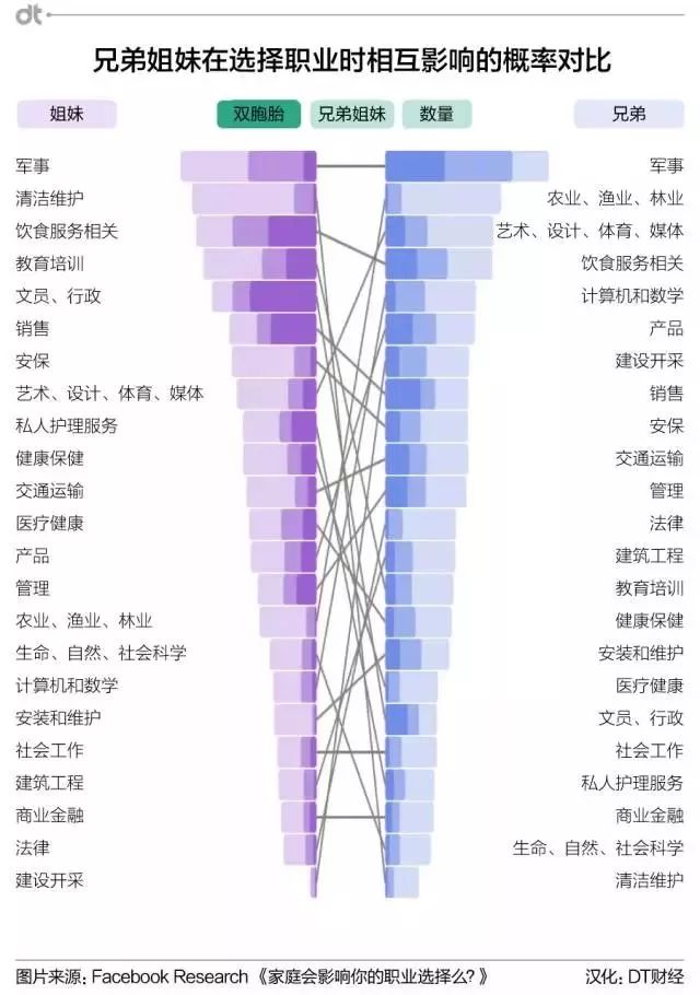 为了分析兄弟姐妹的职业,Facebook收集了237万份数据。数据对象都是美国的同性别兄弟姐妹,并且他们在个人资料中填写了职业信息。