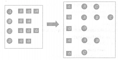 为了计算用户相似度,我们首先要把用户购买过物品的索引数据转化成物品被用户购买过的索引数据,即物品的倒排索引: