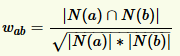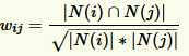 在此,分母中 N(i) 是购买物品 i 的用户数,N(j) 是购买物品 j 的用户数,而分子 N(i)∩N(j)是同时购买物品i 和物品 j 的用户数。可见上述的公式的核心是计算同时购买这件商品的人数比例。当同时购买这两个物品人数越多,他们的相似度也就越高。另外值得注意的是,在分母中我们用了物品总购买人数做惩罚,也就是说某个物品可能很热门,导致它经常会被和其他物品一起购买,所以除以它的总购买人数,来降低它和其他物品的相似分数。