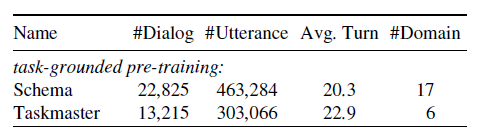 从预训练数据来看,除了 SOLOIST 外,其他三个模型都是尽量使模型可以使用更多的预训练数据。TOD-BERT 联合了九个任务型对话数据集进行预训练,PPTOD 设计了一种可以利用部分标注数据集的模型,GALAXY 则更近一步,有标注和无标注的数据都可以用于训练。